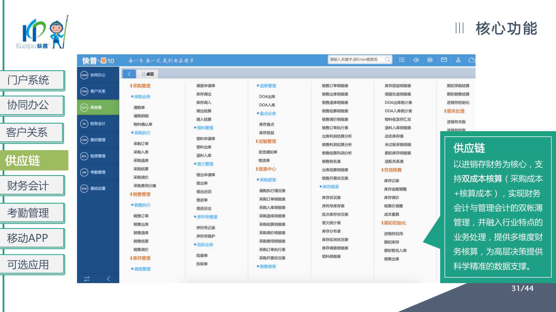 快普易10(商貿(mào)版)提供以客戶為中心的數(shù)字化管理解決方案,涵蓋客戶、銷售、庫存、資金、財務(wù)等業(yè)財一體化管理,全面優(yōu)化流程、提高企業(yè)效率,讓每一筆生意明明白白!