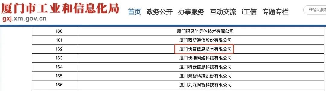 快普榮登“廈門市創(chuàng)新型中小企業(yè)”榜單